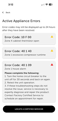 Appliance Error Codes in the Sub-Zero Group Owner's App