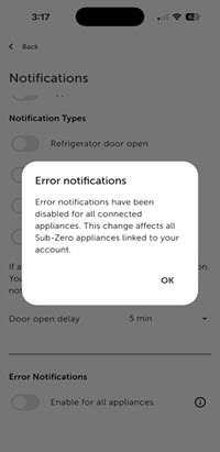 - Important Note: If error notifications are turned off for one appliance, they will be turned off for all appliances.