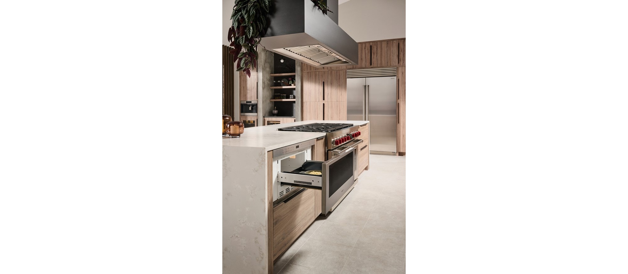 - Install into surrounding cabinetry to coordinate with other Wolf built-in ovens and warming drawers